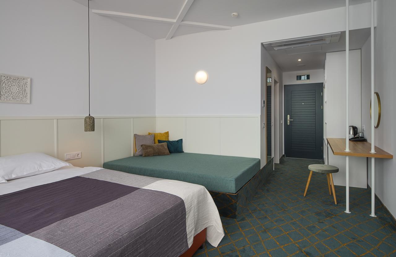 A legtöbb kétágyas szoba kétgyermekes családok számára is alkalmas (2+2). A junior lakosztály tágasabb, mint a kétágyas szobák, és külön nappali résszel rendelkezik. Minden egység (kétágyas szoba és junior lakosztály) kilátással rendelkezik a mélykék Fekete-tengerre vagy a környező völgyre.