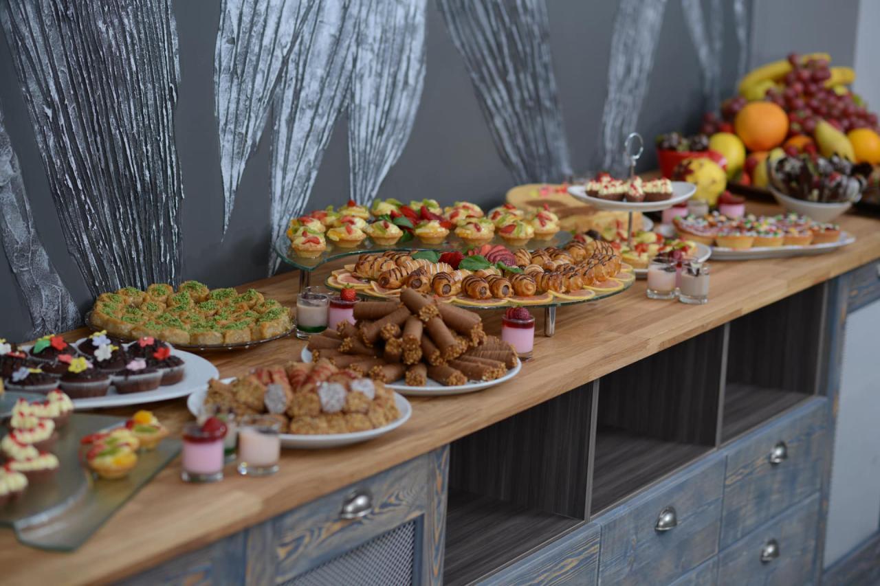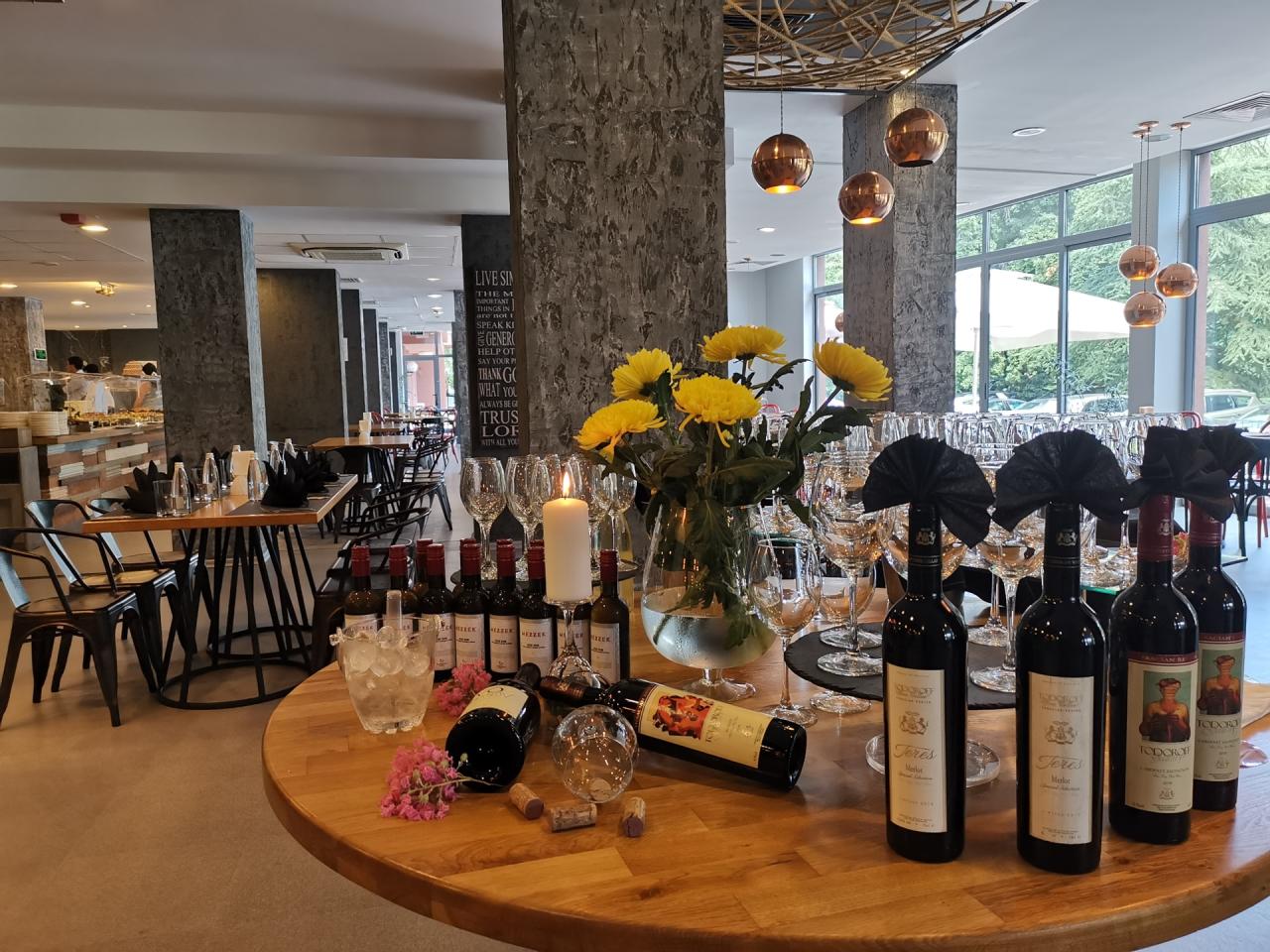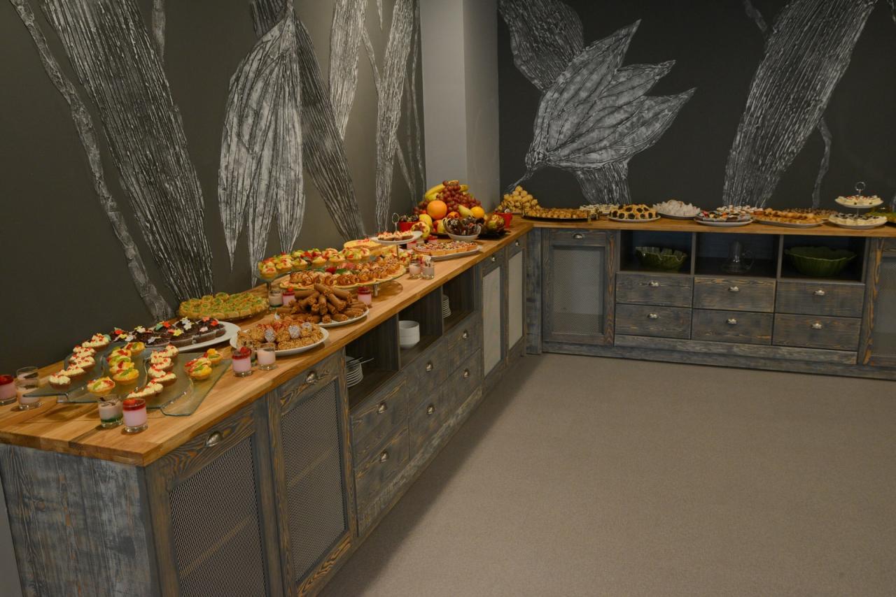 - előételek, saláták, főételek, desszertek, alkoholmentes italok az automatából, sör és bor hordóból